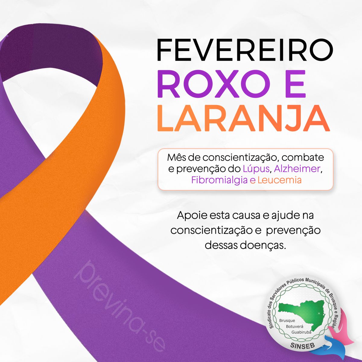 Fevereiro Roxo e Laranja Mês de conscientização, combate e prevenção do Lúpus, Alzheimer, Fibromialgia e Leucemia.