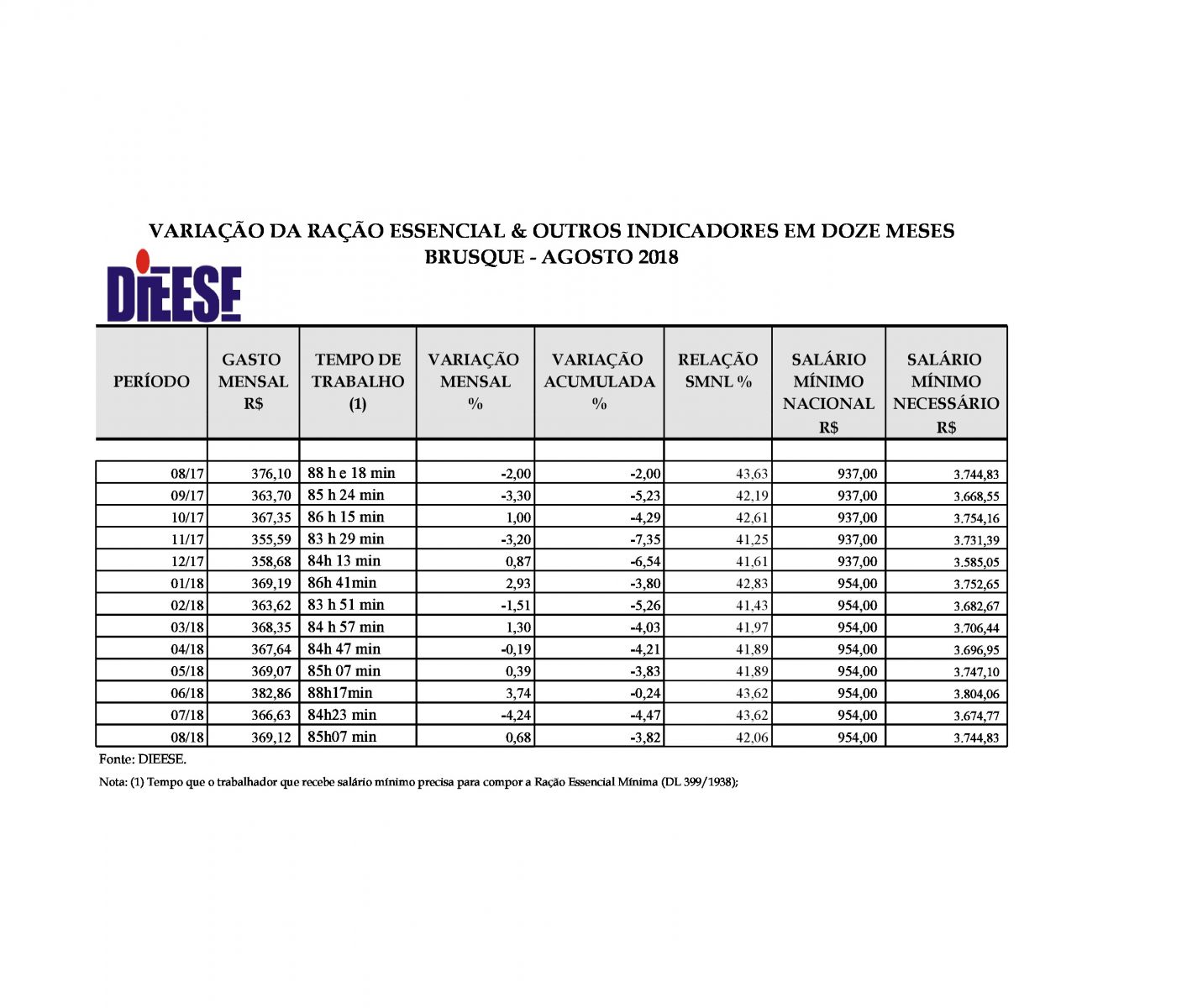 Em Brusque, são necessárias 85 horas mensais de um salário mínimo, para conseguir comprar todos os gêneros alimentícios da cesta básica. Já em Bremen , a mesma cesta consome apenas 19 horas mensais do salário mínimo na Alemanha.