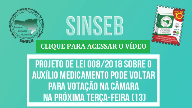 O projeto 008/2018, que trata do Auxílio Medicamento dos servidores públicos de Brusque pode voltar para a votação na próxima terça-feira (13).