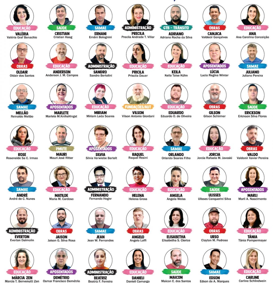 A Chapa 1 é composta por 49 membros das mais diversas secretarias e departamentos de Brusque. Há ainda representantes de Guabiruba e Botuverá.
