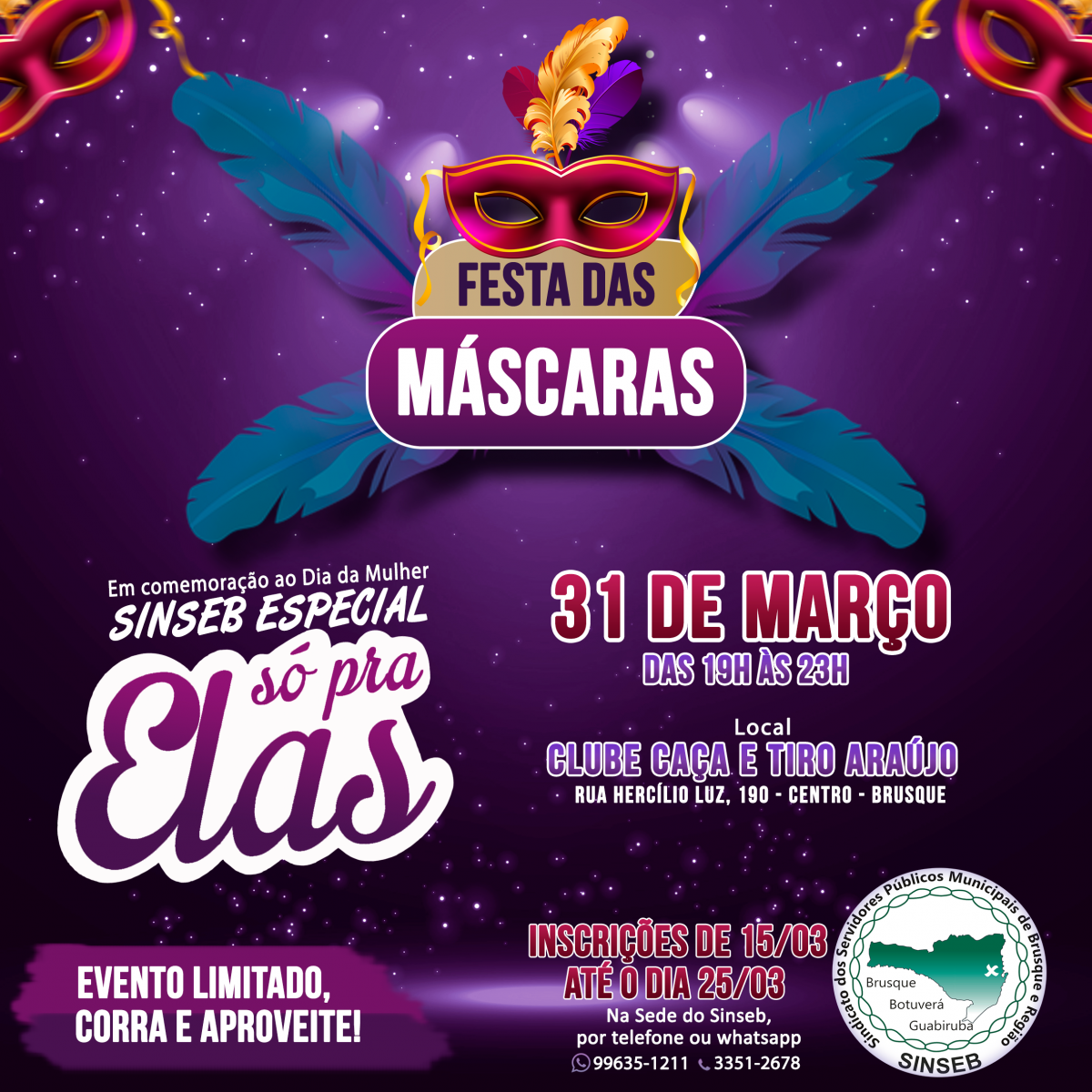 Venha prestigiar esse evento do SINSEB que homenageia o mês das mulheres, no Clube Caça e Tiro Araújo Brusque, das 19h às 23h, dia 31/03. Não perca essa noite, com uma celebração preparada especialmente para as sócias do SINSEB.