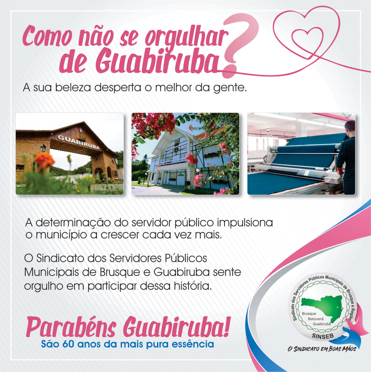 Uma homenagem SINSEB aos 60 anos de Guabiruba, feita em suas redes na última sexta-feira (10/06).