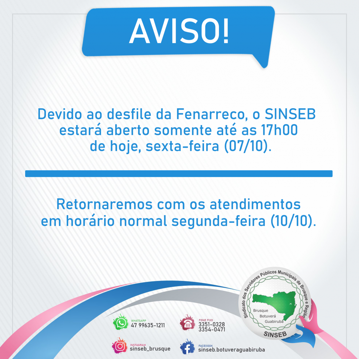 Comunicados através nossas redes o encerramento mais cedo no dia 07/10, devido desfile da Fenarreco e suas alterações no trânsito.