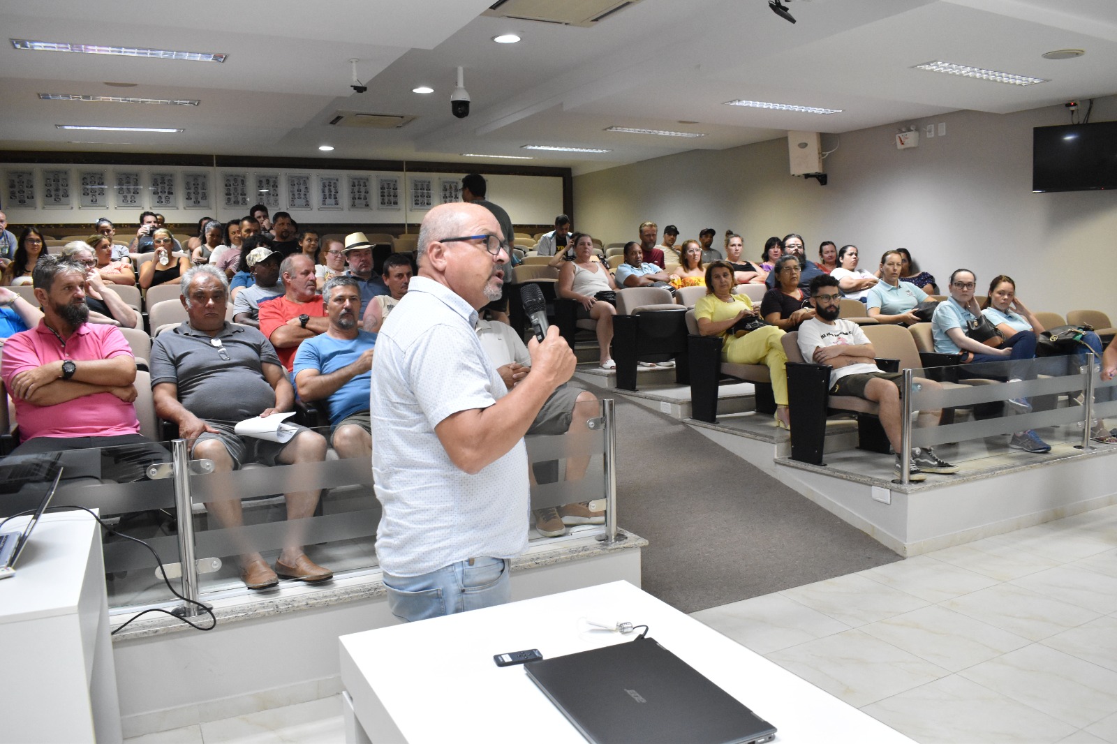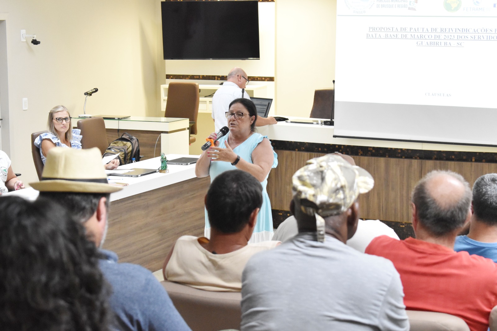 O Auditório da Câmara de Vereadores de Guabiruba quase ficou pequeno para a enorme quantidade de servidores que participaram da assembleia para criação de pauta de reivindicações para a negociação salarial 2023, organizada pelo SINSEB, nesta quarta-feira, 1º de fevereiro. Ficou evidente a maior reclamação da categoria: os baixos salários em relação a região.