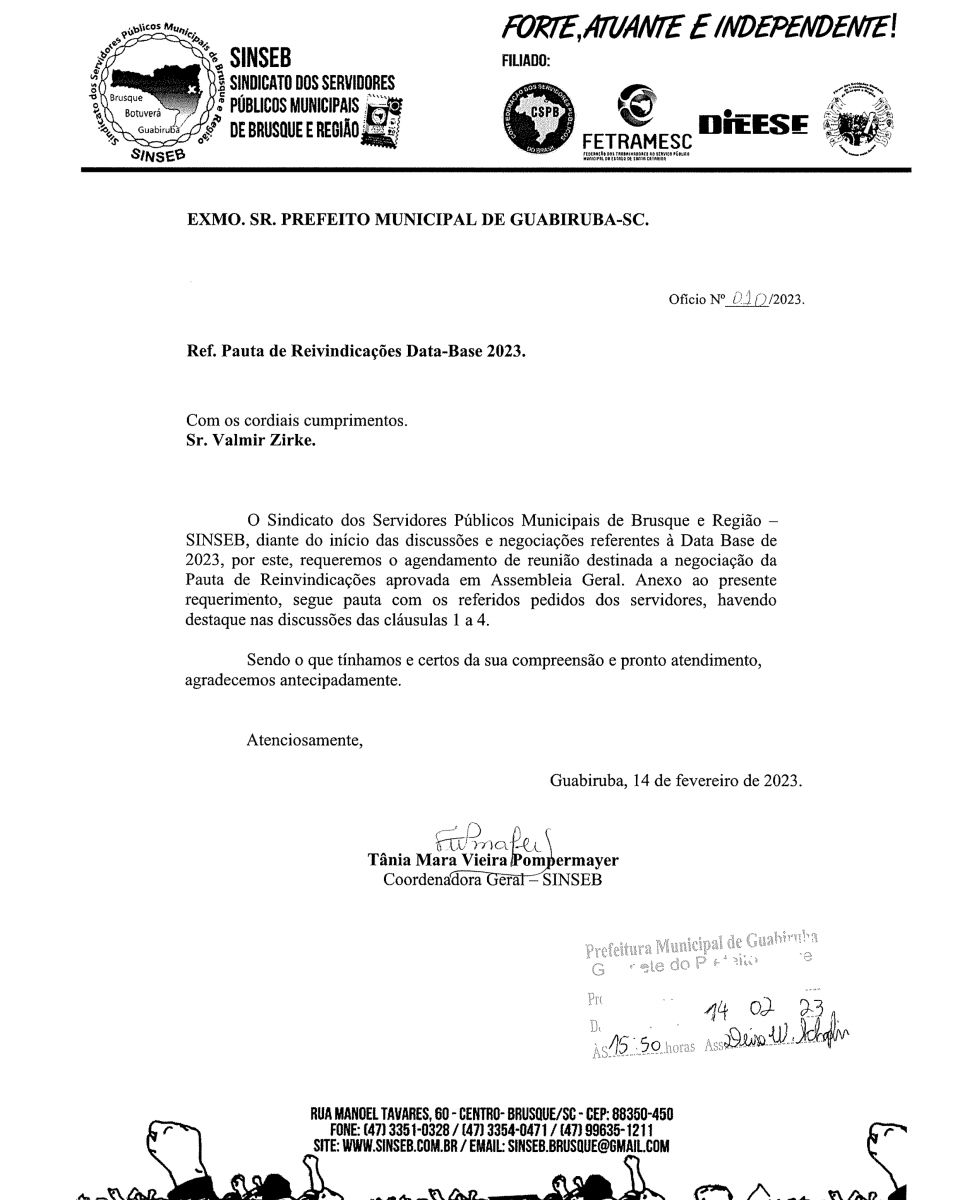 O Sindicato dos Servidores já enviou ofício solicitando o início das negociações salariais para os 3 municípios da base de representatividade.