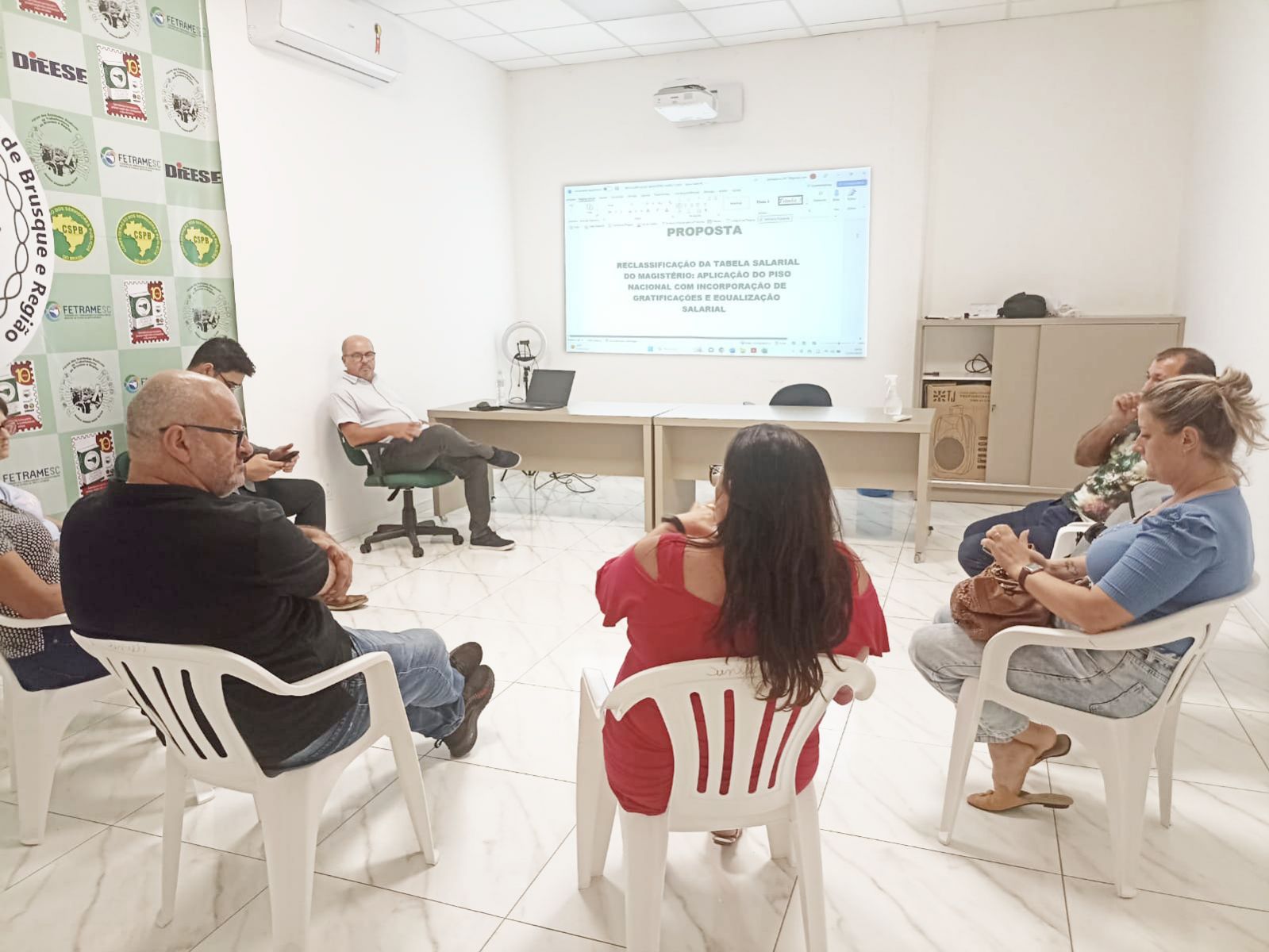 Na terça-feira, 11 de abril, o Sindicato reuniu o grupo de trabalho da educação para apresentar os principais itens discutidos com a administração sobre o Piso Nacional da Educação.