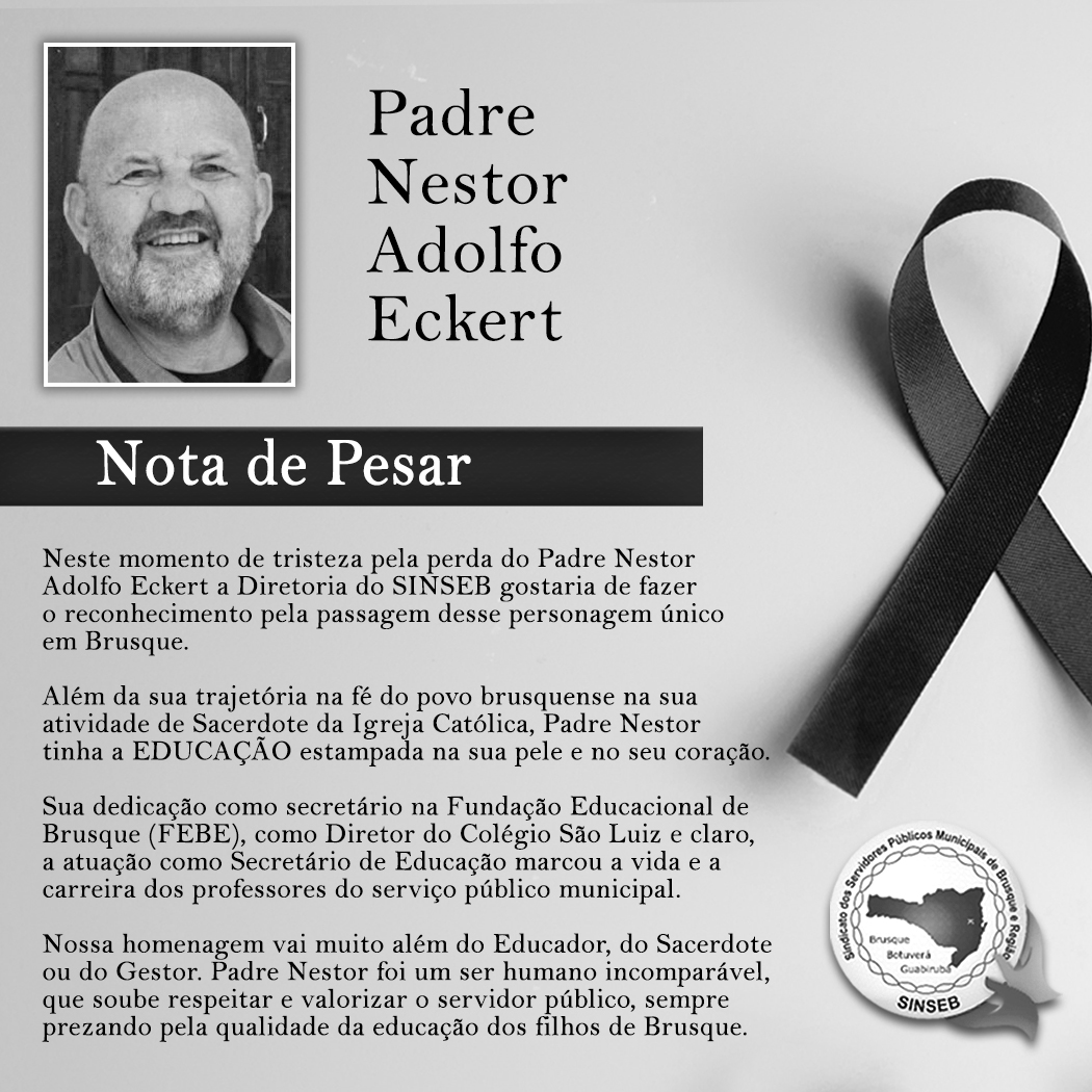 Neste momento de tristeza pela perda do Padre Nestor Adolfo Eckert a Diretoria do SINSEB gostaria de fazer o reconhecimento pela passagem desse personagem único em Brusque.
