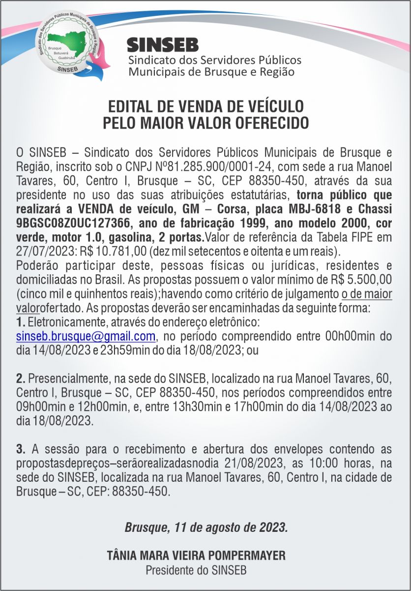 Clique aqui para ter acesso às disposições gerais da venda do veículo: