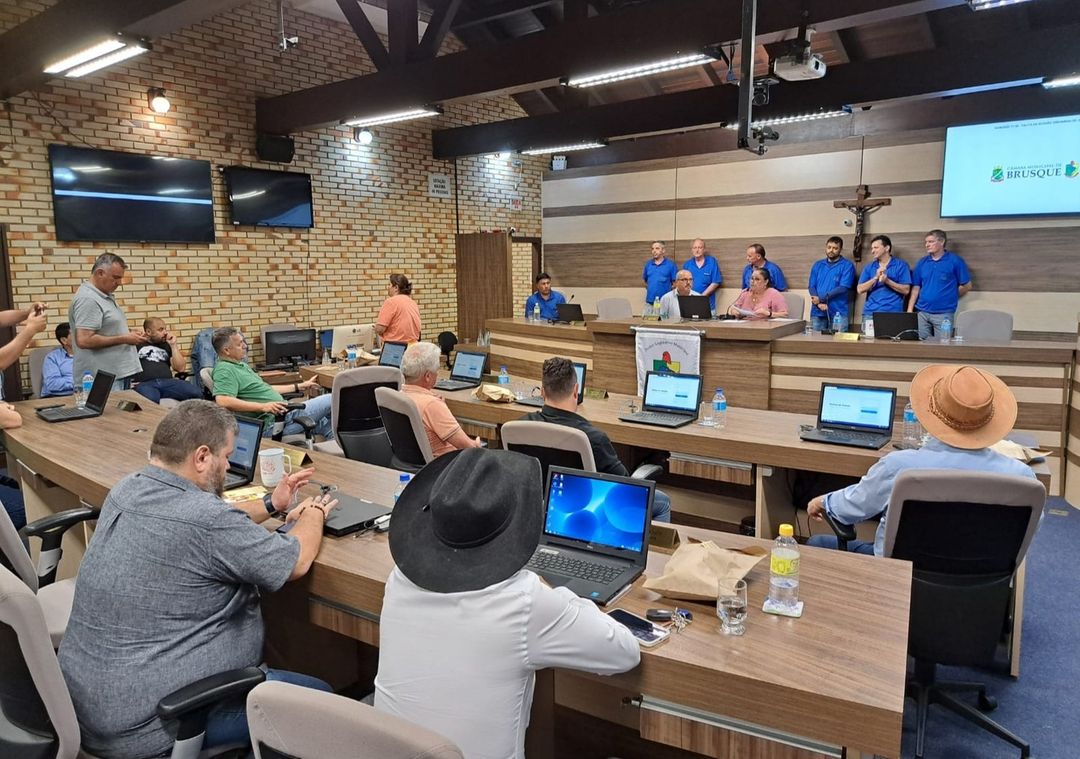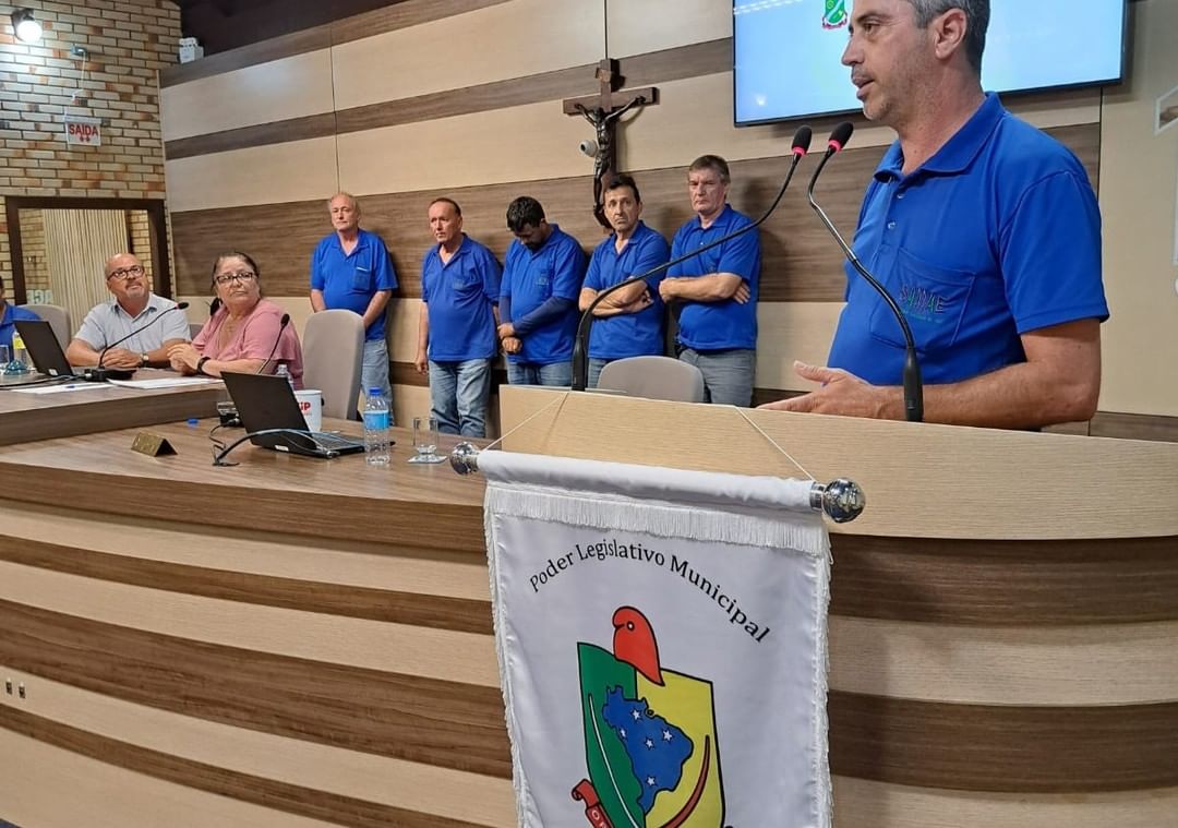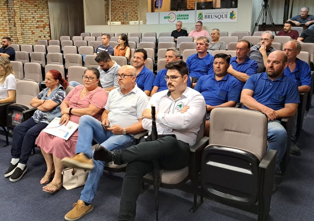 A presidente do Sindicato dos Servidores Públicos de Brusque e Região, Tânia Mara Vieira Pompermayer, e os servidores do Samae acompanharam a sessão da Câmara de Vereadores nesta terça-feira, 19 de setembro, que discutiria um projeto de Lei que pretende terceirizar a leitura do consumo de água dos consumidores de Brusque.