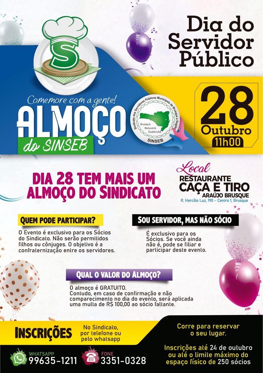 O SINSEB está organizando uma grande festa para você. Venha comemorar conosco.