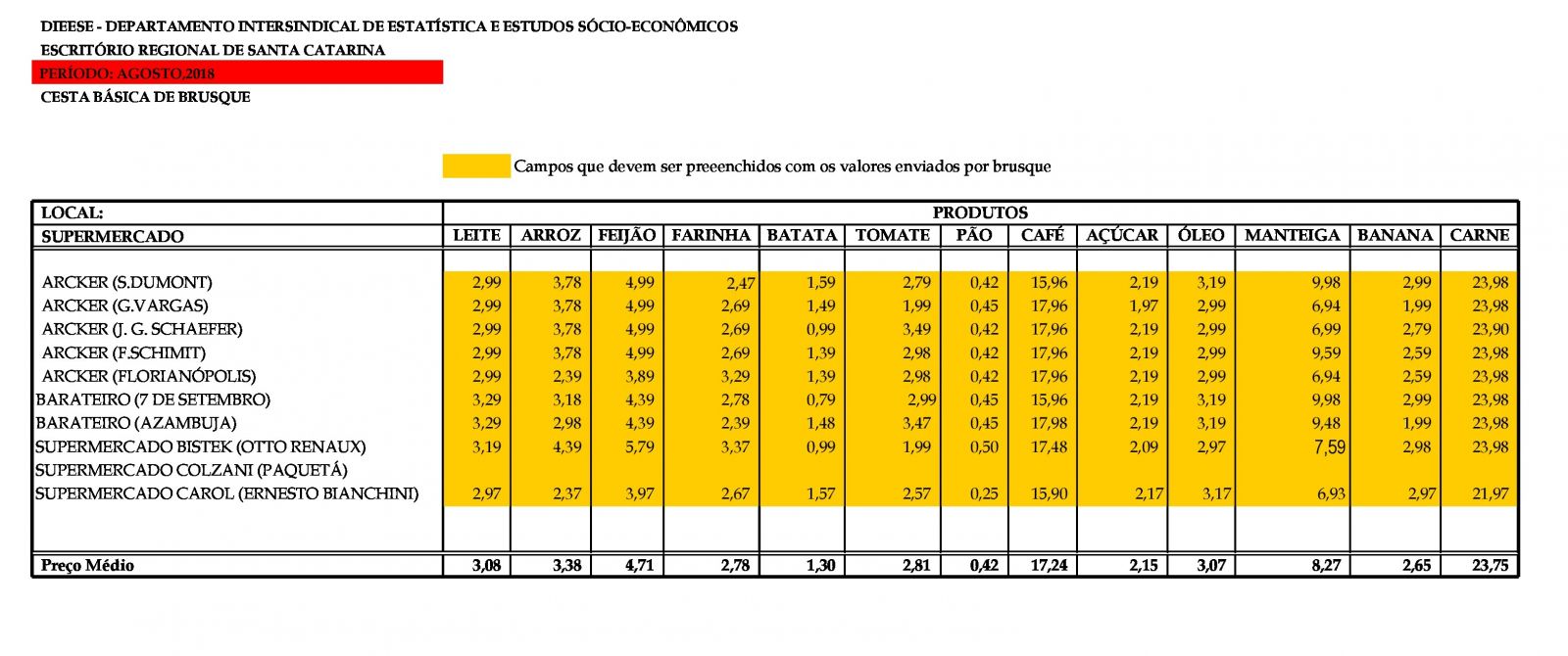 SINSEB compara Cesta Básica de Brusque com a de Bremen na Alemanha