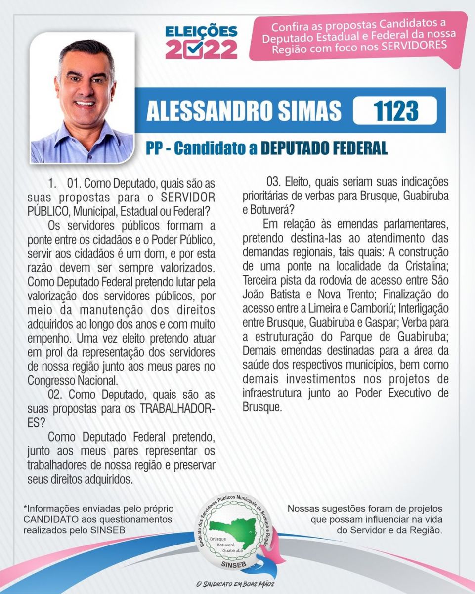 Confira as ideias e propostas de Alessandro Simas, candidato a Deputado Federal, através das redes sociais do Sindicato: