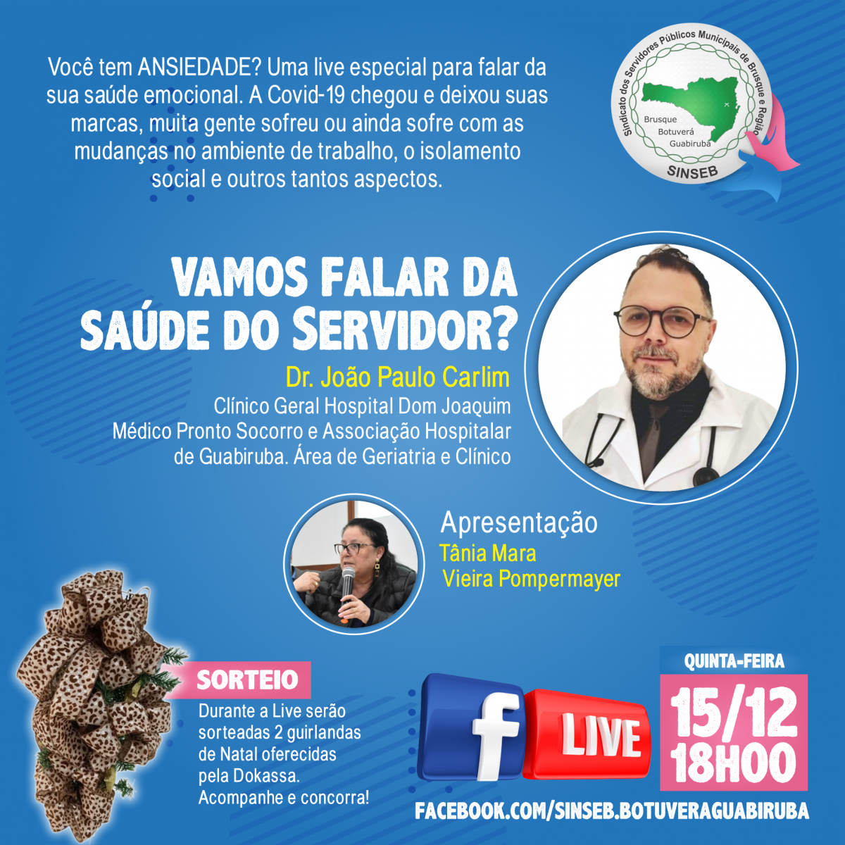 O SINSEB realizou ontem, dia 15/12, uma live apresentada pela presidente Tânia Mara Vieira Pompermayer em conjunto com o Dr. João Paulo Carlim, Geriatra e Clínico Geral de consultoria privada.