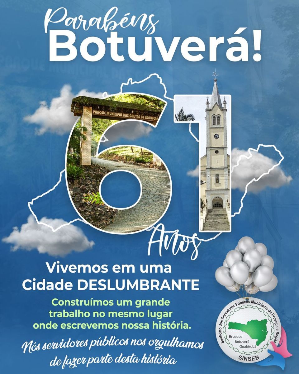 O Sinseb, Sindicato dos Servidores Públicos Municipais de Brusque e Região se orgulha em fazer parte desta história, das memórias e principalmente da realização dos sonhos que o futuro de Botuverá nos reserva!