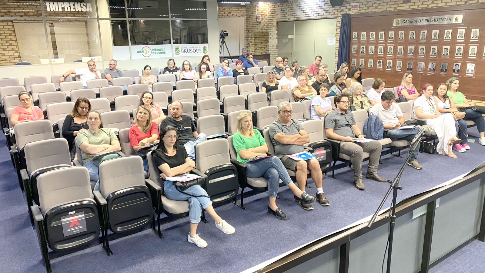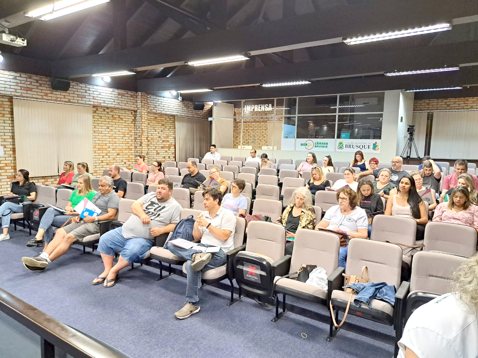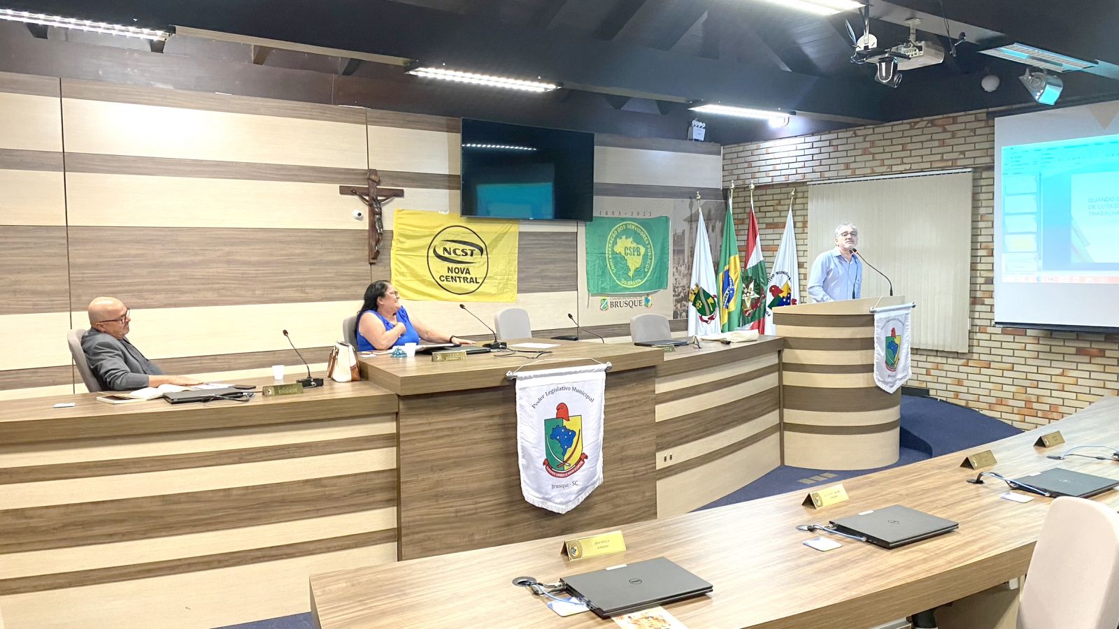 Os líderes representantes dos servidores por locais de trabalho e os diretores do Sindicato dos Servidores Públicos Municipais de Brusque e Região estiveram reunidos nesta quinta-feira, 21 de setembro, na Câmara de Vereadores do Município para receber novos conhecimentos de Formação Sindical.
