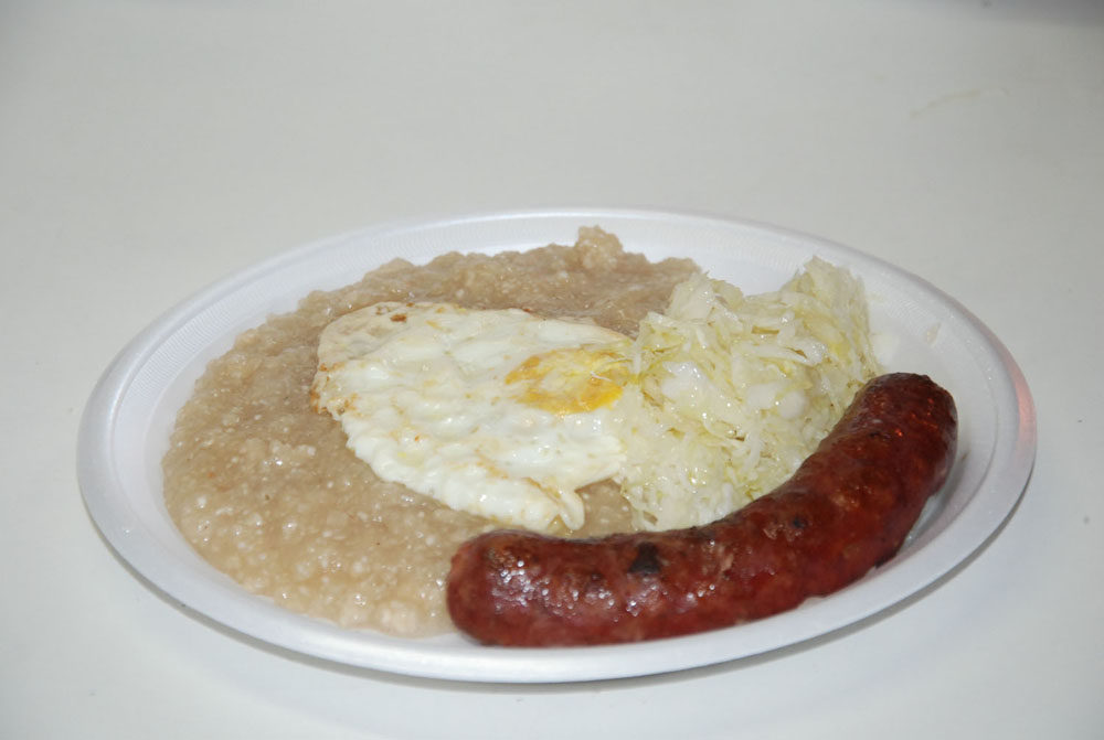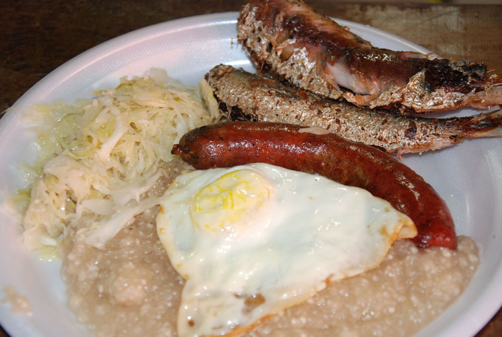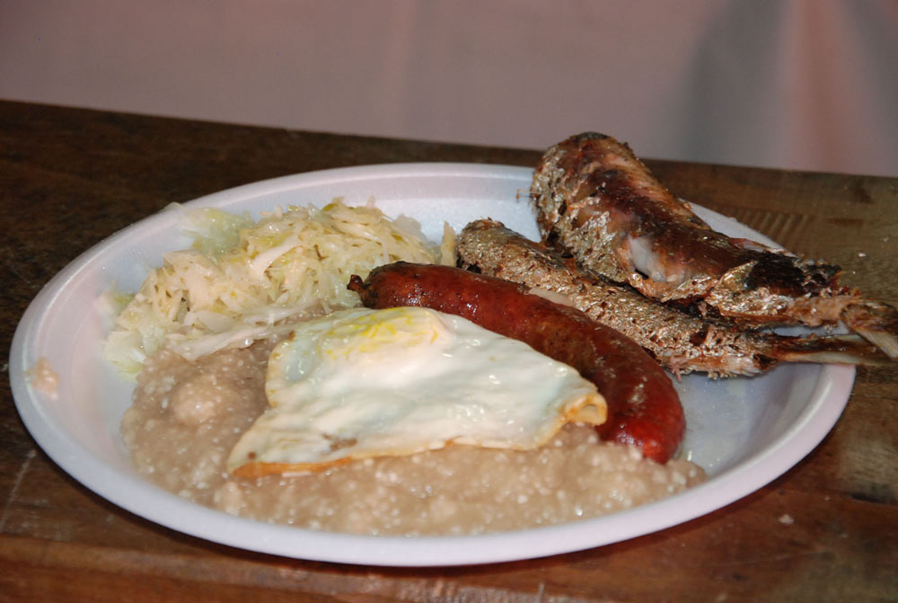 1º Pirão com Linguiça e Charuto frito do SINSEB